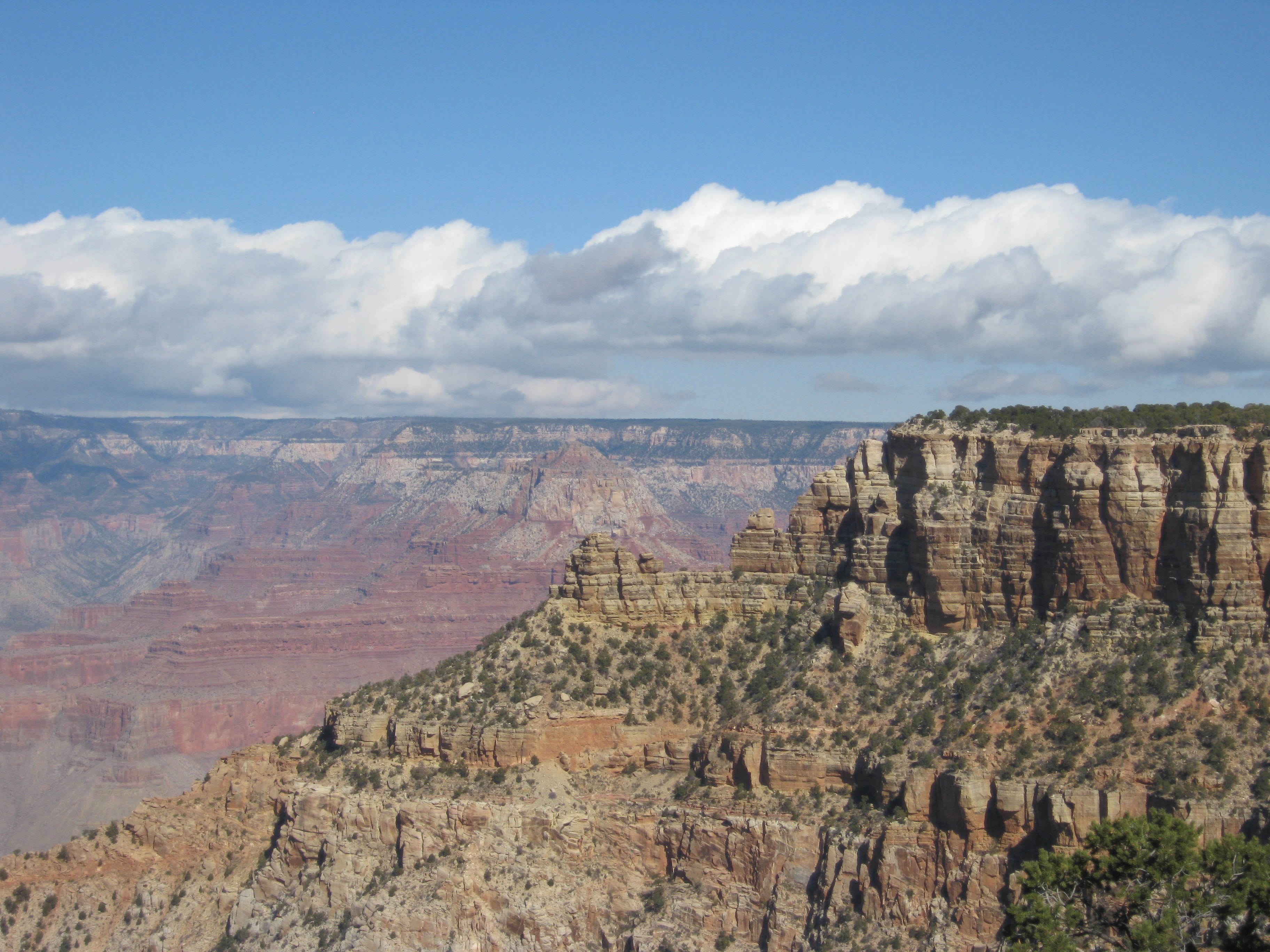 From there, the folks and I went into the park and proceeded along the east side of the south rim, stopping at all various lookout spots along the way. Spending the afternoon there, we witnessed the light and colour change from mid-day, the shadows and mist descending into the canyon as the afternoon got late.