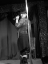 Singer/songwriter/performer/Johnny Depp-lovin’ gal Kat Leonard (http://www.katleonard.com/home.cfm) made us laugh and cry with some tracks from her one-woman show A Depper Kind of Love, as well as her songwriter workshop piece F**K Cancer (to the tune of Leonard Cohen’s Hallelujah), incredibly moving lyrics that brought tears streaming down my face (and a few others in the audience as well). Kat also made excellent use of the onstage stripper pole. 🙂