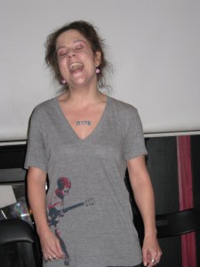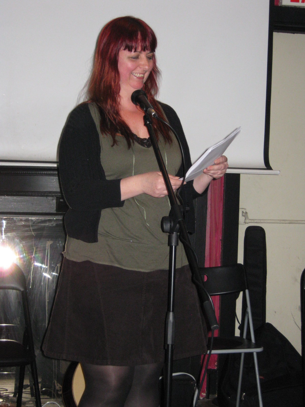 In between music sets, the other two hot ladies brought their spoken wordsmithery. First up was Vanessa McGowan (https://www.facebook.com/profile.php?id=680806392&sk=info), who I saw perform at The Beautiful and the Damned at Zelda’s last month: Opening with an a cappella version of Angel from Montgomery sliding into a spoken word piece about homelessness “and our deepest human desire is to matter” cutting socio-political awareness; no punches held on sexuality, body image and eating disorder issues; power of words overcoming the terror of speaking them; super hero big sister; intense and dark subject matter but a warm, friendly and open soul.
