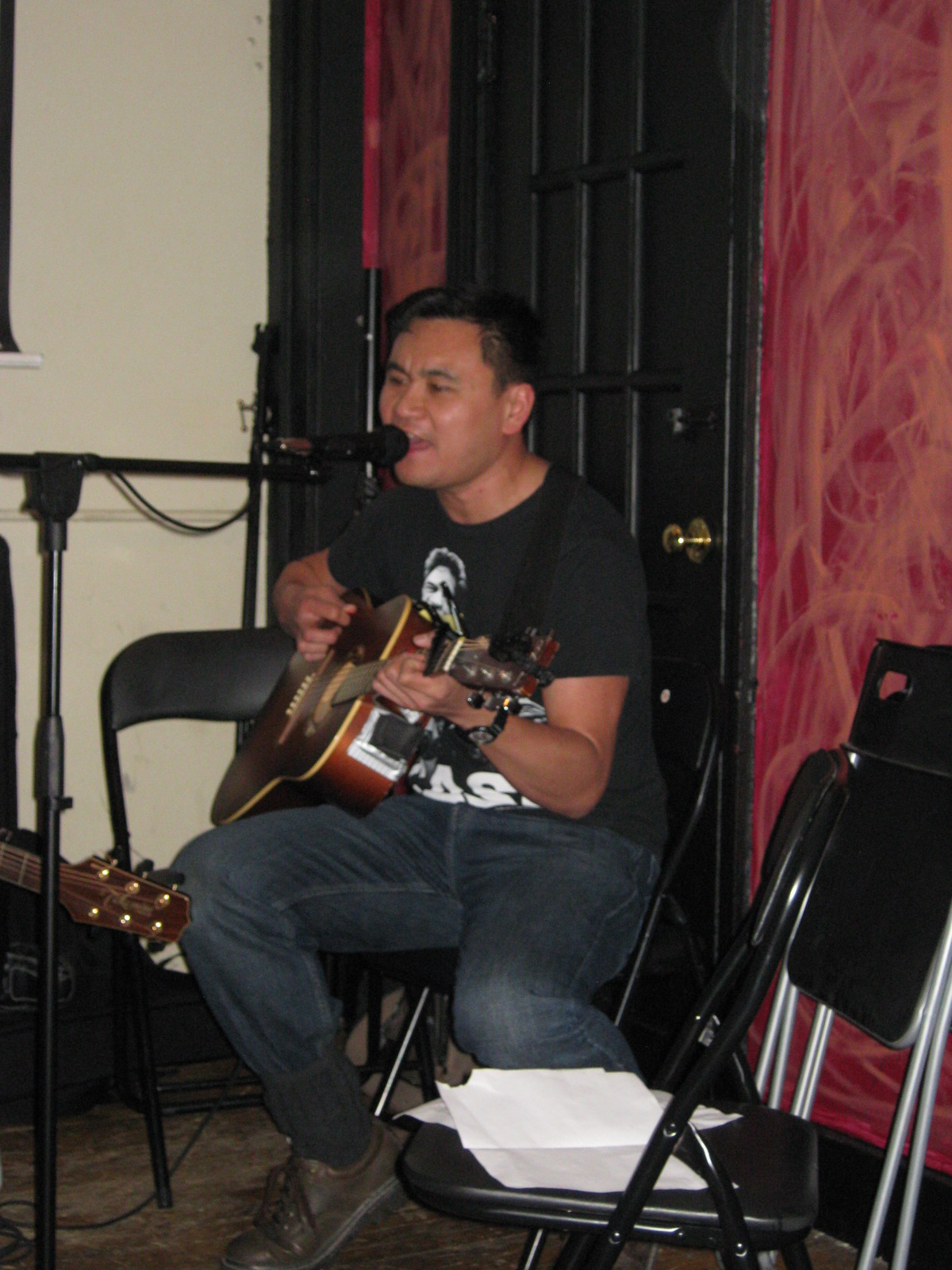 Singer/songwriter Ellie Anderson (http://www.ellieandersonmusic.com/) organized Get Your Groove On – and had her organizer chops really put to the test when she discovered the original venue, Jang Bang Bar, was in the dark and had to quickly relocate the event. And relocate it she did: to the upstairs front room at The Central.