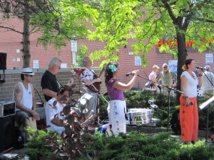 Yesterday, I had a date with one of my ladies – the lovely and talented Lizzie Violet – to go hear Brandon Pitts read at Art of the Danforth. Toronto was having another heat wave day – hot, but not too sticky – and we were very happy to find a spot in the shade at the outdoor venue adjacent to the TCHC apartment building on the south side of Danforth, just east of Greenwood. We got there a bit early, so had the added pleasure of catching some music and song from Voces Poeticas: Music and Poetry in Motion. Thanks to Lizzie for the pics!