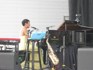 Shannon Butcher, sporting a stunning (and fun!) plum-coloured fascinator and a lovely summer print dress, served up a big, fun jazz set with a trio of musicians backing her up, with Butcher bringing out her ukulele “Shelly” for a number. Crystal clear, easy and inviting, Butcher’s vocals invite you in and ask you to stick around. And audience participation was encouraged, especially on “Here Comes the Sun” – and she inspired a couple to get up and dance too! You can find Shannon Butcher here: http://www.shannonbutcher.com/