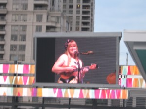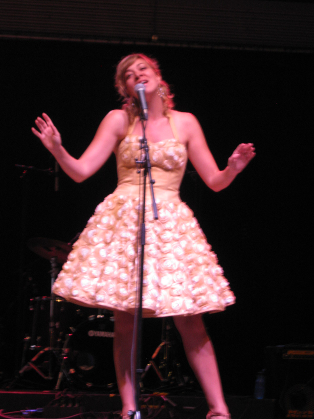 Feature performer Jill Barber – gorgeous in a vintage pale yellow dress covered with rose buds – and her band treated the audience to some silky (with a hint of a purr) crooning, from the title track from her Chances CD to selections from her latest all-original songs CD Mischievous Moon, including “Took Me By Surprise.” And more dancing from the crowd – pretty sure it was the same couple from Butcher’s set. With musical stylings that take you back in time to the days of the supper club, I couldn’t help but picture Jill Barber turning Don Draper’s head while performing in a scene of Mad Men during cocktail hour. Pay Jill Barber a visit here: http://www.jillbarber.com/