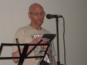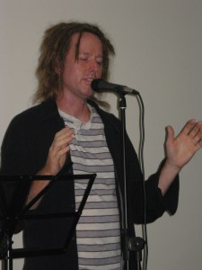 Feature performer David Bateman gave us a haiku about a beautiful but vacuous man, the laugh-out-loud funny “Crocodile Cock” (an ode to hemipenes), cats names changed from Tabby and Puss to Caspian and Euphrates in a darkly funny break-up poem, a remembrance of mother’s china cabinet, a shout out to Marshall McLuhan – with a decidedly unusual and sexy alternate use for a vacuum cleaner “You are screwing a vacuum cleaner. You have no conscience.” – and an ode to Canadian Tire.