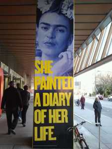 Kahlo painted the landscape of her soul and leaves it all on the canvas – passion, the pain, her love of Mexico and its indigenous art. The canvasses depicting her physical and emotional turmoil are visceral, haunting, heart- and gut-wrenching. Beautiful and terrible at the same time. As Kira and I wandered through the exhibit, we chatted about the work, the artists and the film Frida – where director Julie Taymor so brilliantly used Kahlo’s paintings and palette, making the work come to life, and where Salma Hayek so fully inhabited the character of this beautiful and remarkable woman and artist.