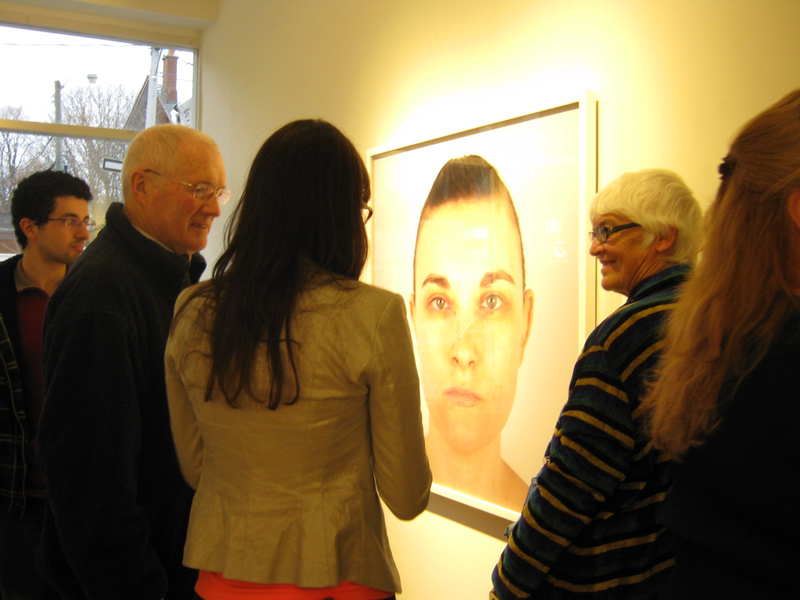 Visitors to the gallery can see the one of the three self-portrait photographs as they approach the entrance. When I arrived, I met Vitasek, who gave me a tour of the exhibit, along with background info on the project. I couldn’t help but think about the irony of opening such a personal, revealing exhibit, which then had to be defended in front of her professors – an anxiety-inducing act in itself – a point that, while unspoken, I don’t think was lost on either of us. After we finished chatting, I took the opportunity to wander and visit each piece myself, going back to revisit, winding through the crowd as the space filled up.