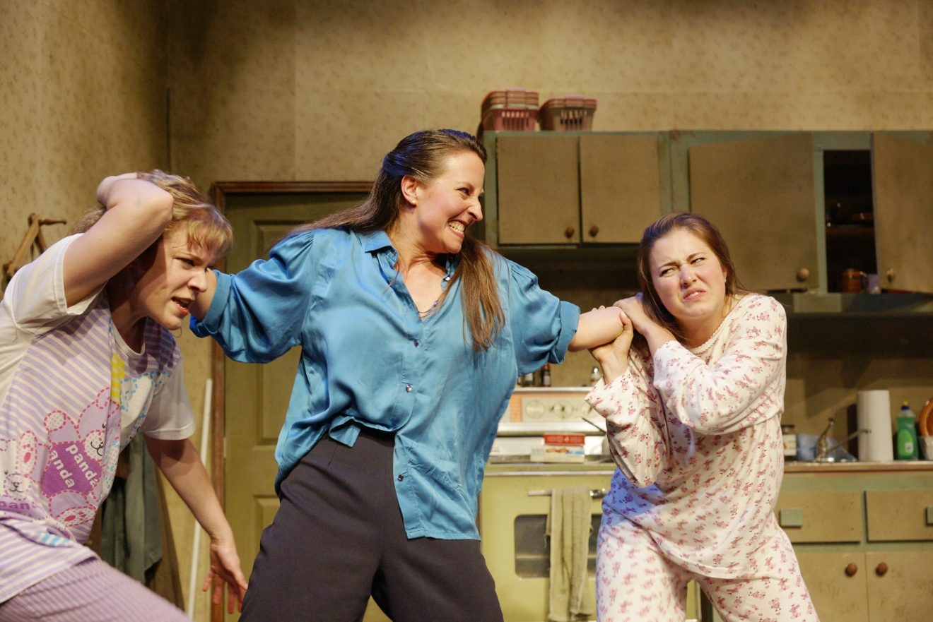 Directed by Andrea Wasserman, Escape From Happiness is one of three plays in Walker’s East End Trilogy, a dark comedy of family dysfunction, set against the backdrop of crime vs. law and order. When a series of troubling events threaten the safety of her family, Nora (Heli Kivilaht) rallies her two oldest daughters, Elizabeth (Andrea Brown) and Mary Ann (Lesley Robertson), to the family home in order to discover who beat up youngest sister Gail’s (Renée Haché) husband Junior (Maxwell King). Tom, the family patriarch (David Cairns), gravely ill and mostly keeping to his room, goes unacknowledged by Nora as the husband and father of the house (she insists he’s only someone who looks like him), and cared for by Gail and Junior. A history of alcoholism, explosive anger and violence has created a huge rift in the family, and Gail is the only one willing to forgive. Add to the mix low-level criminals Rolly (Robert Skanes) and Stevie (Colin MacDonald), and diametrically opposed detectives Mike (Ryan Seeley) and Dian (Joanne Sarazen), then turn up the volume to 11 and break off the knob as these people struggle to cope with some very bizarre circumstances.