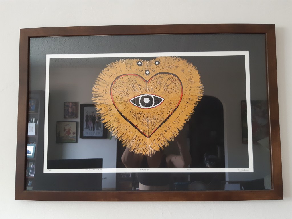 In the spirit of sharing and engaging with art, here’s a little tour of the art that hangs in my apartment—in alphabetical order, by artist (with links, as available). These are not professional photos, and they’ve been taken where the pieces live, in their natural habitat—so there will be some glare and reflection in the glass.